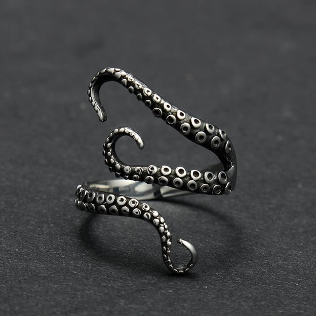Inspired by the strength of the ocean, this octopus tentacle ring wraps around your finger with bold texture and sculpted detail.