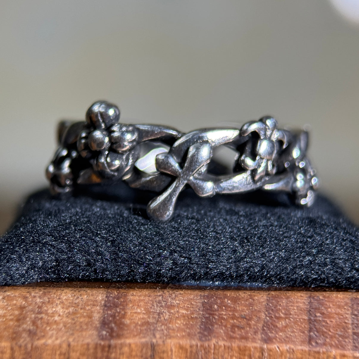 Vintage Silver Cross & Blossom Band – Gothic Link Ring(R04/04)