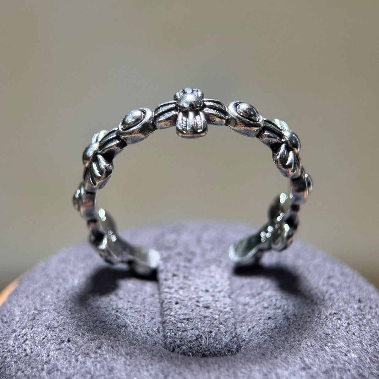 Vintage Silver Crossflower Band – Gothic Adjustable Ring(R04/01)